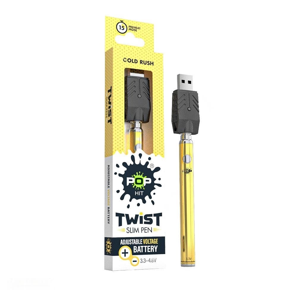 Pop Hit Twist Slim Pen Battery: The Discreet and Portable Vape Pen The Pop Hit Twist Slim Pen Battery is a discreet and portable vape pen that is perfect for those who want a stealthy vaping experience. It features a sleek and stylish design that is easy to conceal and a button-activated design that makes it easy to use.