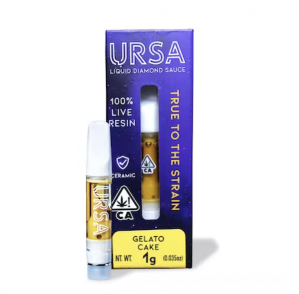 Buy Gelato Cake Liquid Diamond Sauce URSA Carts Online. Gelato Cake is a combination of Wedding Cake and Gelato #33. It’s part of the very popular Cookie strain family. The top reported aromas of the Gelato Cake strain are vanilla, gas, and citrus. It is said to taste of vanilla, berries, and pepper. Gelato Cake Liquid Diamond Sauce URSA Carts for Sale Online